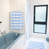 Das erste Obergeschoss bietet ein großes Schlafzimmer sowie zwei kleinere Zimmer, ideal als Kinderzimmer oder Büro. Die Eigentümer hatten eine Zusammenlegung der kleineren Räume angedacht, um die Etage als eine großzügige „Kinderebene“ zu gestalten, die durch ein Wannen- und Duschbad ergänzt wird.