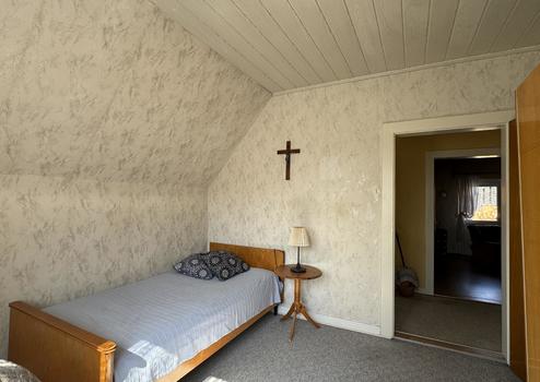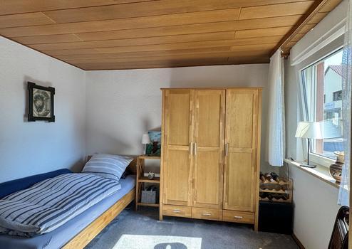 Das Dachgeschoss verfügt über drei Schlafzimmer, wovon eines mit einem praktischen Ankleidebereich verbunden ist. Ein weiteres Schlafzimmer bietet nach einem Umbau Zugang zur sonnigen Dachterrasse – perfekt zum Entspannen im Freien.