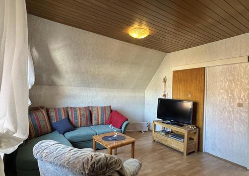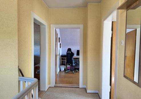 Im Erdgeschoss erwarten Sie ein großzügiger Wohnbereich sowie ein Esszimmer mit direktem Zugang zur Küche. Das Badezimmer ist mit Dusche und Wanne ausgestattet und rundet die Etage funktional ab.