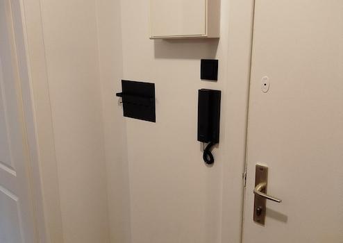 - Flur mit Flies Tapete und Akustikpanel NEU und kleiner Garderobe