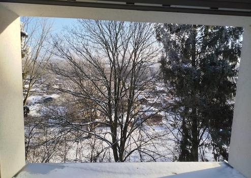 Grundsätzlich ist zu sagen, dass die Whg. durch eine absolut ruhige Lage besticht, nicht nur durch die 3-fach verglasten Fenster, die Wohnung liegt nach hinten mit Blick auf Bäume, also ins Grüne mit Weitblick vom 4 OG.