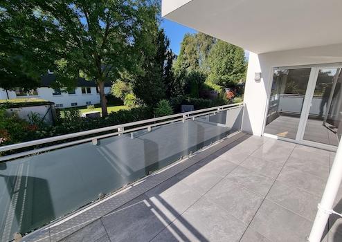 - Balkon, ca. 12 qm groß und von zwei Räumen aus begehbar, neues Geländer in Edelstahl mit mattierten Glasfüllungen
