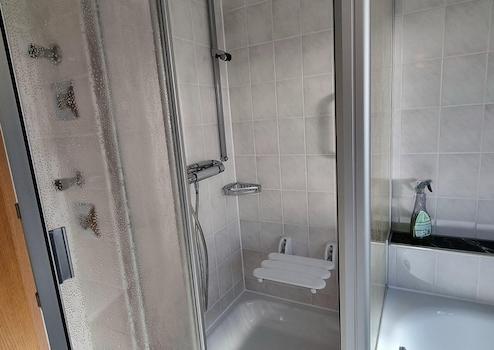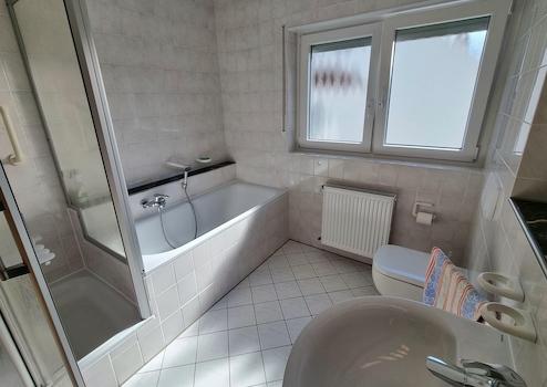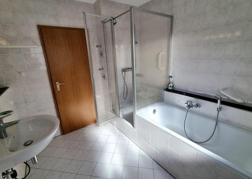 - Tageslichtbad mit Duschkabine, Badewanne und Spiegelschrank