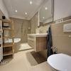 - Badezimmer mit Badewanne & Dusche, Fußbodenheizung, innenliegend