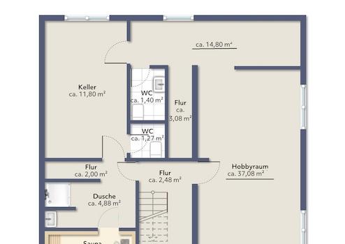 Die Wohnflächen wurde unter Berücksichtigung der DIN277 kalkuliert, wobei konkret im UG die beiden Hobbyräume zu 100% angesetzt wurden, während alle weiteren Räumlichkeiten gar nicht, bzw. lediglich als Nutzfläche berücksichtigt wurden.