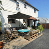 Eine Terrasse im Hof ergänzt das Haus als kleiner Rückzugsort im Freien.