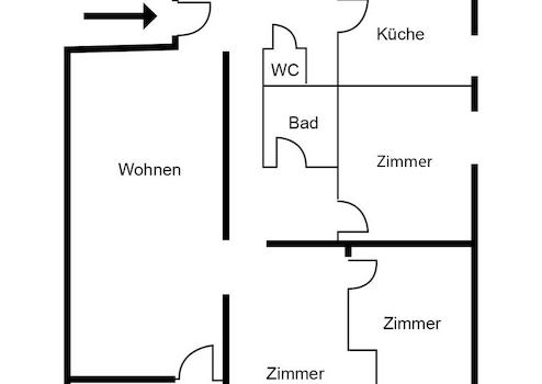 Alternativ ist der Grundriss und die Lage optimal für ein WG Konzept, da es sich mit einfachen Umbaumaßnahmen zu 4 WG Zimmern umbauen lässt.