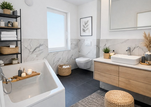 Exklusive Sanitärausstattung (Grohe, Villeroy & Boch, Geberit, Duravit)