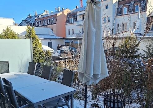 - Balkon, Terrasse und Mini-Garten zum Innenhof hin