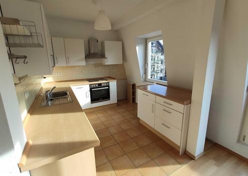 Die Einbauküche wird vom Vermieter mit Dunstabzugshaube, Herd, jedoch ohne Geschirrspülmaschine und Kühlschrank vermietet.