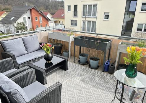 Die Wohnlage zeichnet sich durch ihre Nähe zum Feldrand und den daraus resultierenden hohen Erholungswert aus. Spazier- und Wanderwege durch die angrenzenden Weinberge befinden sich in unmittelbarer Nähe und bieten vielfältige Freizeitmöglichkeiten. Der Balkon bietet einen seitlichen Ausblick in Richtung der umliegenden Weinberge, während sich im direkten Umfeld eine gewachsene Wohnbebauung mit angrenzenden Häusern befindet. Dadurch entsteht eine angenehme Mischung aus naturnaher Perspektive und urbanem Wohnumfeld.