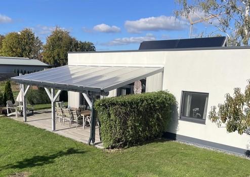 Draußen lädt die überdachte Südterrasse zum Entspannen ein. Das ca. 1.000 m² große Grundstück bietet viel Platz zum Spielen, Gärtnern oder Abschalten und ist mit schönem jungen Baumbestand versehen. Ein Doppelcarport mit Schuppen ist ebenfalls vorhanden.