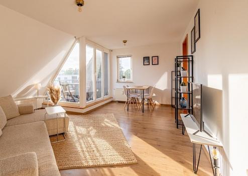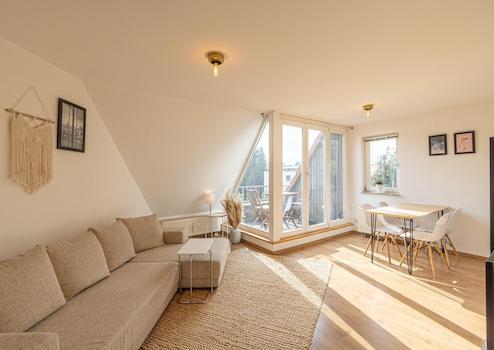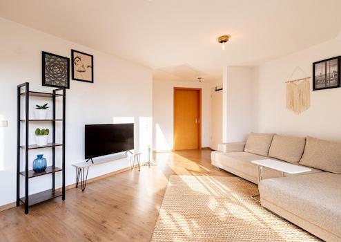 Sehr ruhige Lage, man kann entspannt im Sommer mit geöffneten Fenstern schlafen. Sehr tolles Licht in der gesamten Wohnung (die beste Wohnung im Gebäude). Große Supermärkte sind zu Fuß erreichbar. Öffentliche Verkehrsmittel zu Fuß erreichbar. Sehr viele freie kostenlos Parkplätze direkt an der kleinen Straße vor dem Gebäude (auch für Ihre Gäste ist immer Platz).