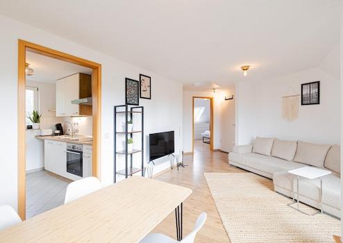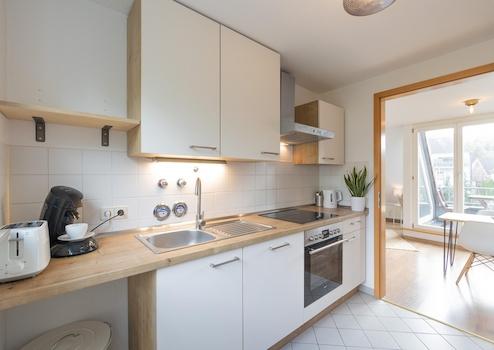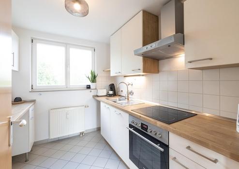 Inklusive allen technischen Geräte (Samsung 4K Smart-TV, Fritzbox DSL-Kabelrouter, Kühlschrank, Spülmaschiene, Waschmaschiene, Backofen, Ceranfeld, Kaffemaschiene, Wasserkocher, etc.)