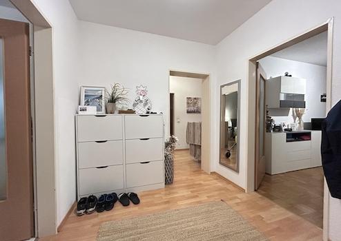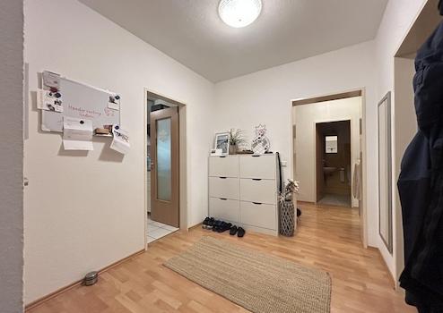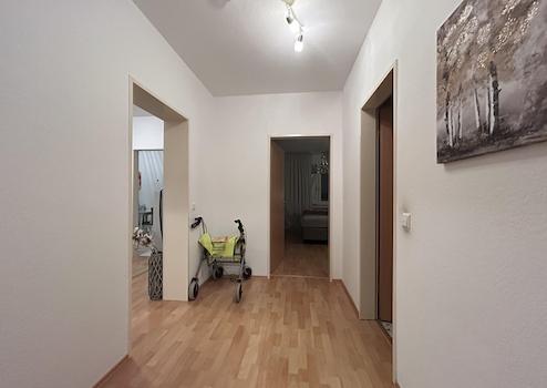 Die 3-Zimmerwohnung befindet sich im 2. Obergeschoss und man tritt vom Treppenhaus in den geräumigen Flur, von dem alle Räume erreichbar sind. Ein zusätzlicher kleiner Abstellraum bietet Platz für die alltäglichen Dinge.