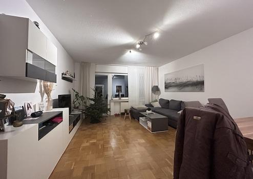 Das lichtdurchflutete Wohnzimmer mit Echtholzparkett bietet genug Platz für gemeinsame Abende mit Freunden oder der Familie. Zusätzlich bietet es Zugang zum Balkon um zu Entspannen.