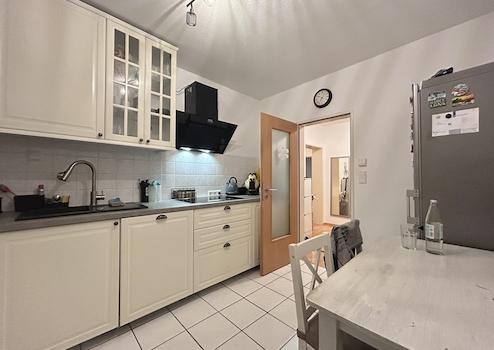 Die große geräumige Küche lädt zum Verweilen und gemütlichen Kochabenden ein, es passt nicht nur eine große Küchenzeile hinein, sondern auch ein kleiner Frühstückstisch. Die Küche kann vom aktuellen Mieter für 2.000€ übernommen werden.