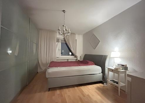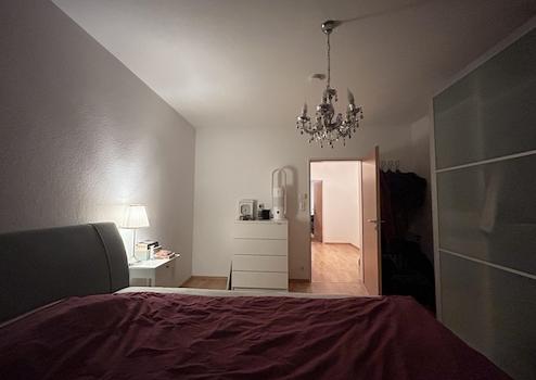 Durch den Flur geht es ins Schlafzimmer, welches genug Platz für ein großes Bett und einen großen Kleiderschrank bietet. Durch die Schallschutz-Fenster ist Ruhe garantiert.