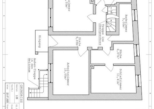 Das Ende 1963 fertiggestellte, teilunterkellerte Haus mit zwei Geschossen und ausbaufähigem Dachgeschoss hat eine Gesamtwohnfläche von 169 m², verteilt auf 9 Zimmer mit 2 Küchen und 2 Bädern, steht auf einem 402 m² Grundstück mit Doppelgarage, großem Garten mit Obstbäumen, Weinreben und geräumiger Gartenlaube.