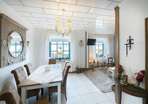 gemütliches Wohn-/Esszimmer, offene Küche, WC