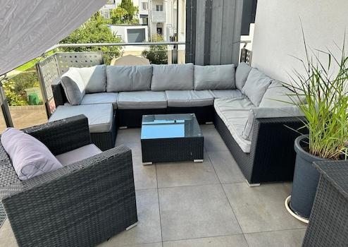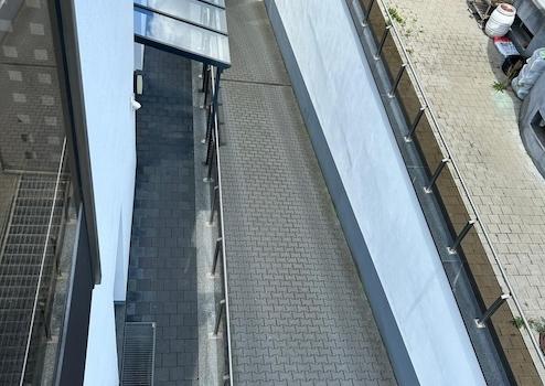 Dachterrasse befindet sich entlang der Ost-, Süd und Westseite und verfügt über einen Wasseranschluss. Die ruhige Westseite alleine hat eine Fläche von mehr als 35m² (Gesamtfläche Terrasse über 70m²) und bietet neben Platz für einen großen Essbereich ebenfalls zB. Platz für eine gemütliche Loungegarnitur.