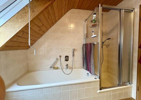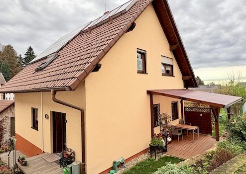 Auf dem Hausdach (nach Süden ausgerichtet) sind eine Solaranlage und eine Thermische Anlage installiert.