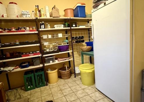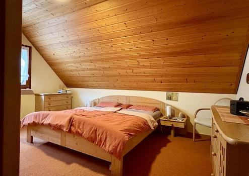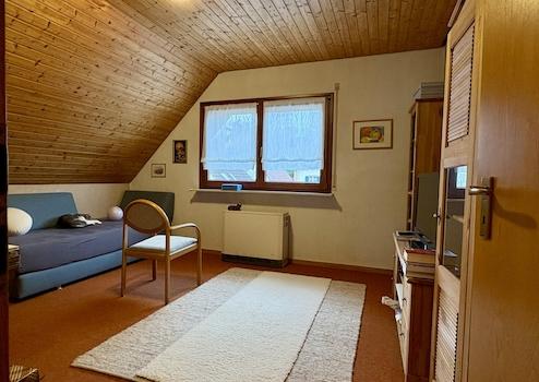 Im großen Nebengebäude vor dem Haus sind eine PKW Garage und eine größere Garage (in der früher ein Camping Bus - Größe Fiat Ducato stand) untergebracht. Unter dem Satteldach darüber ist viel Platz für Holz und sonstiges….