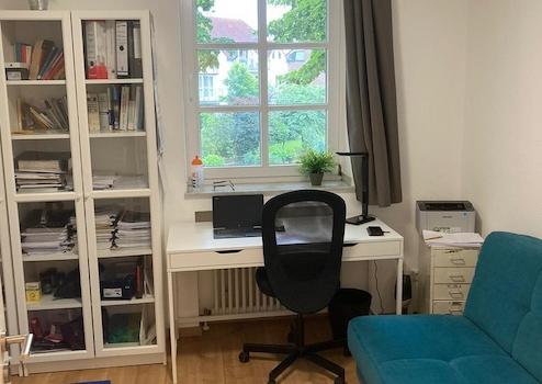 - Kinderzimmer oder Arbeitszimmer mit Bücherregal und Schreibtisch