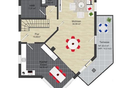 Das Einfamilienhaus ist wie folgt aufgeteilt: