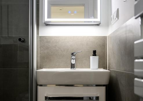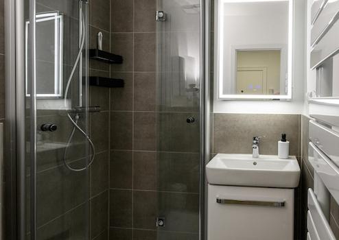 In der gesamten Wohnung, mit Ausnahme des Badezimmers, ist edler und wasserfester Vinylboden in schicker Holzoptik verlegt. Das Badezimmer ist mit neuen Premium-Elementen ausgestattet und beinhaltet eine Dusche, ein WC, einen Waschtisch mit Unterschrank, einen modernen Spiegelschrank mit integrierter Beleuchtung und wird durch die hochwertigen Fliesen in schicker Optik abgerundet.