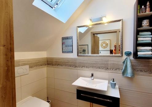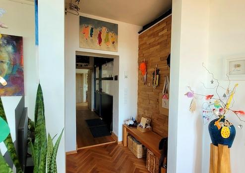 Das Dachgeschoss wurde energetisch hochwertig saniert (u. a. Aufdachdämmung und Zwischensparrendämmung), ergänzt durch ökologische Materialien wie Lehmbausteine und Holzfaserdämmplatten. Die komplette Verrohrung wurde erneuert, der vorhandene Parkettboden fachgerecht vom Schreiner aufgearbeitet.