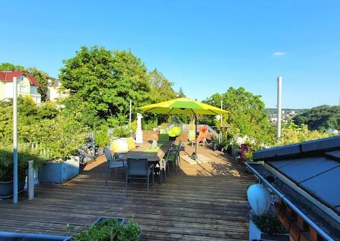 Ein echtes Highlight ist die rund 80 m² große Dachterrasse, die 2017 vollständig neu hergestellt wurde und einen freien Weitblick bietet.