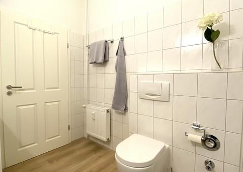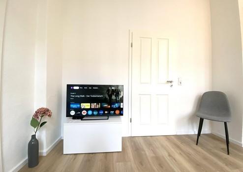 Die Wohnung ist voll ausgestattet mit einer Einbauküche und allen dazugehörigen Utensilien wie u.a. Gläser, Besteck, Töpfe, Pfannen etc., einem neu eingerichteten Bad inklusive Waschmaschine, Badewanne mit Dusche und neuen Badehandtüchern, einem Wohnbereich mit neuem Sofa, Smart-TV und W-LAN, einem möblierten Essbereich, einem großen Schlafzimmer mit neuem Doppelbett, Kleiderschrank, frischem Bettzeug und einem HomeOffice Arbeitsplatz, einem kleinen Flur mit Garderobe und Schuhschrank und einer Abstellkammer mit Staubsauger, Wischmob, Putzeimer, Bügeleisen, Bügelbrett, Wäscheständer und Leiter.