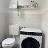 Das Duschbad ist in neutralen Farben gehalten und hier findet ebenfalls die Waschmaschine Platz.
