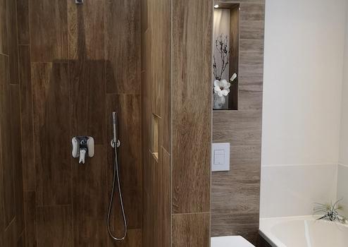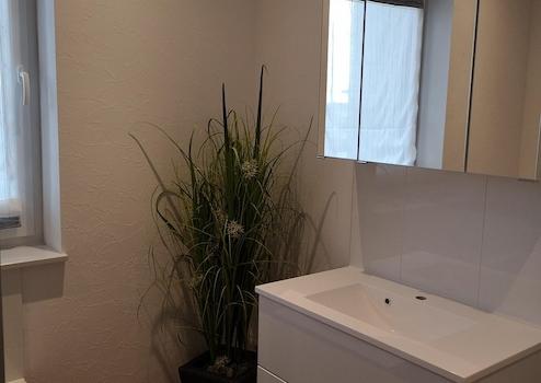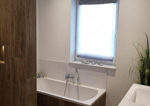 - zwei Bäder mit ebenerdiger Regendusche, Badewanne und Möbel