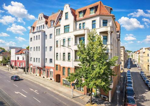Diese attraktive Zweiraumwohnung mit ca. 68 m² Wohnfläche befindet sich im 1. Obergeschoss eines als Kulturdenkmal geschützten Mehrfamilienhauses. Das Gebäude ist Teil eines Ensembles aus zwei viergeschossigen, symmetrisch angeordneten Jugendstilhäusern und vermittelt bereits von außen den architektonischen Charme der Gründerzeit.