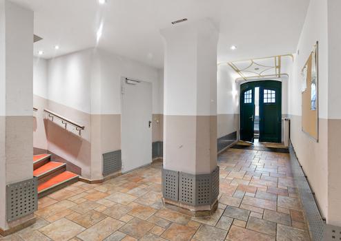 Die Wohnung wurde frisch gestrichen und überzeugt durch ihren authentischen Charakter. Originale Holztüren sowie erhaltene Stuckelemente unterstreichen den historischen Charme der Gründerzeit. Dieses Erscheinungsbild setzt sich im gepflegten Treppenhaus fort, in dem ebenfalls zahlreiche originale Elemente fachgerecht erhalten und renoviert wurden.