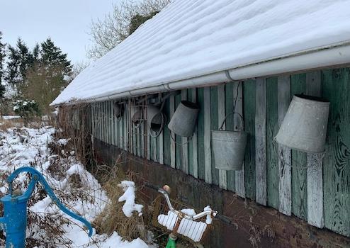 Im Dachgeschoss sind zwei Zimmer ausgebaut, zusätzlich kann hier weiterer Wohnraum geschaffen werden. Das Haus umfasst derzeit drei Zimmer im Erdgeschoss, darunter ein großes Wohnzimmer, zwei Schlafzimmer und ein Badezimmer. Die Küche bietet durch eine kleine Speisekammer zusätzlichen Raum. Der Wintergarten ermöglicht einen idyllischen Blick ins Grüne.