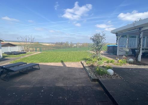 Das große, ebene Grundstück in bester Feldrandlage ist nicht nur ein Blickfang, sondern bietet eine Vielzahl an Nutzungsmöglichkeiten. Neben dem Gartenhäuschen, dem Pavillon mit Überdachung und den großzügigen Terrassenflächen lässt sich hier die Freizeit naturnah und dennoch komfortabel gestalten.