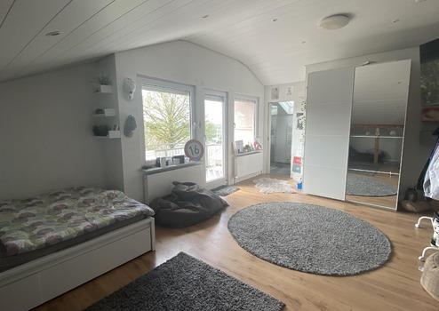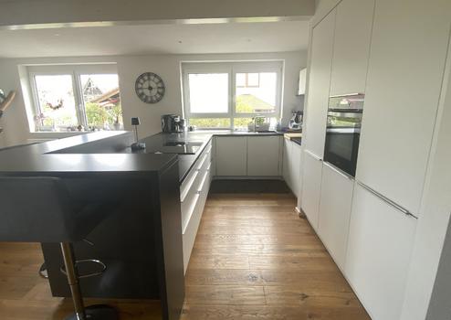Die zweite Wohneinheit im Obergeschoss wurde 2018 umfassend ausgebaut und begeistert mit modernen Dachgauben, einem edlen Parkettboden, stilvollem Kamin und offenem Raumgefühl. Der große Wohn-/Essbereich mit offener Küche bietet eine gemütliche Wohnatmosphäre und viel Platz.