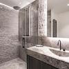 Die Bäder sind mit Traventin Naturstein und Vola Armaturen ausgestattet und lassen keine Wünsche offen. Die Waschtische wurden aus massivem Stein heraus gearbeitet.