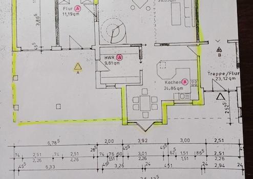 In der Wohnung B sind die Trennwände zum Arbeitszimmer und Flur