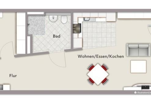 Die Angaben im Exposé beziehen sich auf die Informationen des Auftraggebers. Eine Gewähr für die vollständige Richtigkeit kann nicht übernommen werden. Die Abbildungen sind nicht maßstäblich und dienen der Illustration. Bei Flächenmaßen handelt es sich um Circa-Angaben vom Eigentümer oder Rohbaumaße. Das dargestellte Mobiliar ist nur ein beispielhafter Einrichtungsvorschlag.