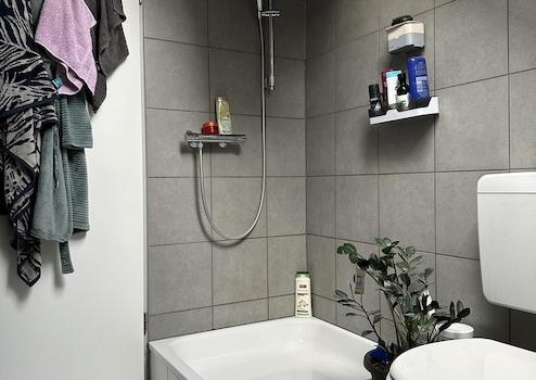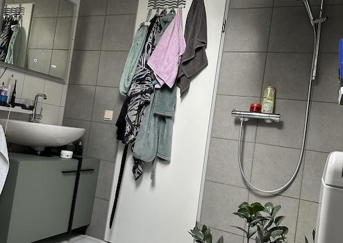 Die beigefügten Fotos sind aktuelle Aufnahmen aus der Wohnung, die einen kleinen Einblick der Wohnungsaufteilung sowie der verbauten Materialien geben (Fliesen im Badezimmer, Laminat-Oberboden in den anderen Räumen).