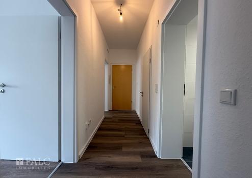 Beim Betreten dieser sanierten 3,5 Zimmer Wohnung mit einer Wohnfläche von 52,9m² werden Sie von einer einladenden Diele empfangen, die Ihnen Zugang zu allen Räumen bietet. Der Boden ist mit Laminat ausgelegt, was dem Raum eine warme Atmosphäre verleiht.
