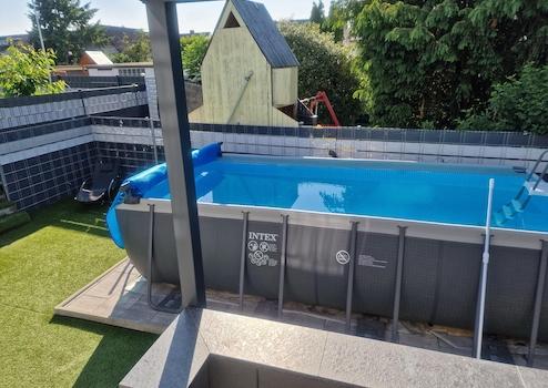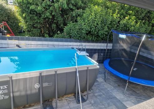 Terrasse, Garten, Keller, Vollbad, Duschbad, Sauna, Pool · Schwimmbad, Einbauküche, Gäste-WC, Kamin, Laminat
