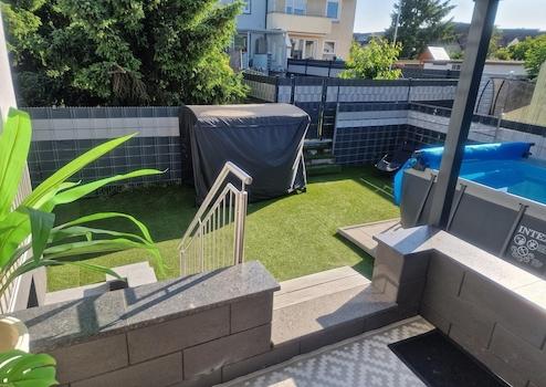 Die dreistöckige, ansprechende und neuwertige Villa besticht durch eine gehobene Innenausstattung. Neben acht schönen Zimmern zählen außerdem drei Badezimmer zu der Immobilie. Das Haus wurde im Jahr 2013 erbaut. Besonders toll ist die großzügige Grundstücksgröße von 369 Quadratmetern, die Ihnen im Sommer zu einem regelrechten Outdoor-Zimmer werden kann.
