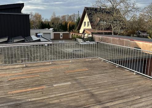 3 Zimmer, Küche, Bad im 1. OG eines 5 Parteien-Hauses. Mit Balkon und großer Dachterrasse.
