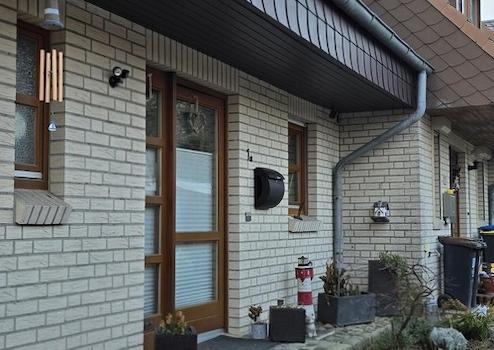 Die Außenwände sind hell verklinkert, das Dach ist mit dunklen Betondachsteinen gedeckt und im Jahre 2023 komplett gereinigt und neu Nano versiegelt. Die Kunststofffenster sind doppelt verglast und in 2025 erneuert. Die Fenster sind alle mit elektrischen Rollläden versehen ( Funksteuerung per FB oder APP-Steuerung).