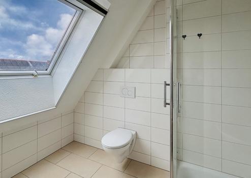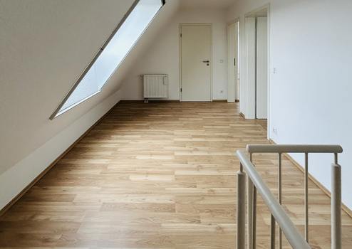 Über eine stilvolle Treppe gelangt man in das Dachgeschoss. Dort erwarten Sie zwei weitere Zimmer sowie ein modernes Tageslichtbad mit Dusche. Die gelungene Raumaufteilung bietet vielseitige Nutzungsmöglichkeiten - ideal für Paare, Familien oder als Kombination aus Wohnen und Arbeiten.